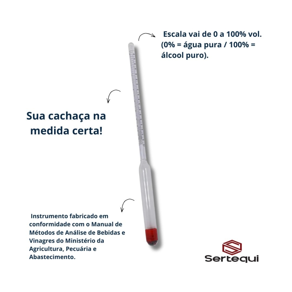 -Fácil visualização, com marcações nítidas e leitura direta em graus GL (Gay Lussac).