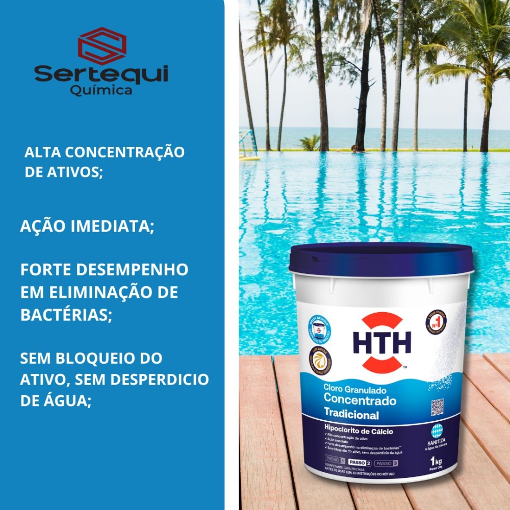 O Cloro Granulado Concentrado 1kg é a solução prática e eficiente para manter a água da piscina sempre limpa, cristalina e saudável. Sua fórmula de rápida dissolução garante ação imediata, eliminando bactérias, fungos e microrganismos que podem causar contaminações, além de auxiliar na prevenção da proliferação de algas.